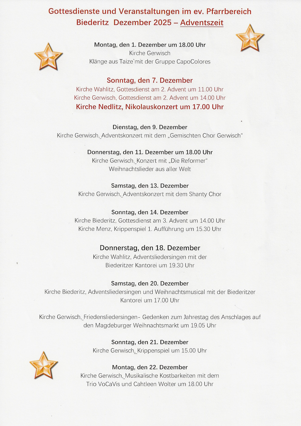 im Gottesdienst in Wahlitz am 07.12.25